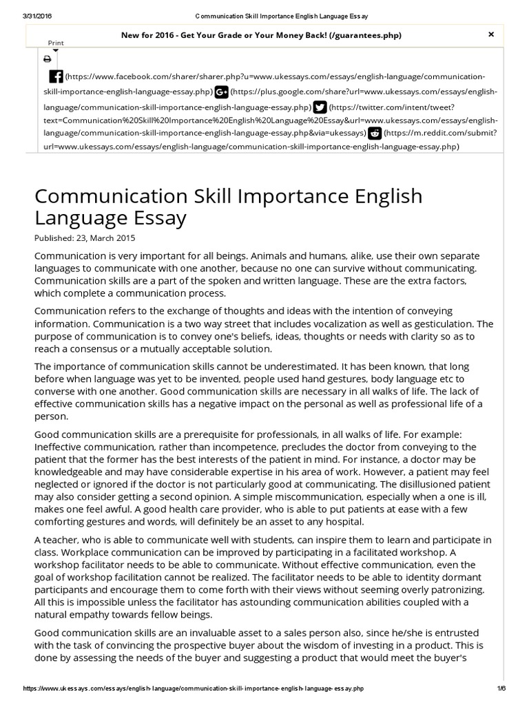 Through effective communication, she will surely get the required and timely work is done by her co-workers easily. Buy Customized Essay on Importance of Communication Skills At Cheapest Price Order Now. This essay sample discusses some tips on how to improve communication skills by understanding what people want and need from their conversations. you can find other free essay samples on essay on communication skills official website. Are you still struggling to finish your essay on the importance of communication skills? You can take online essay writing services from Students Assignment Help and it will be completed before the deadline! We offer all types of academic assistance including coursework writing servicescollege assignment helpand even thesis writing help at very inexpensive rates.